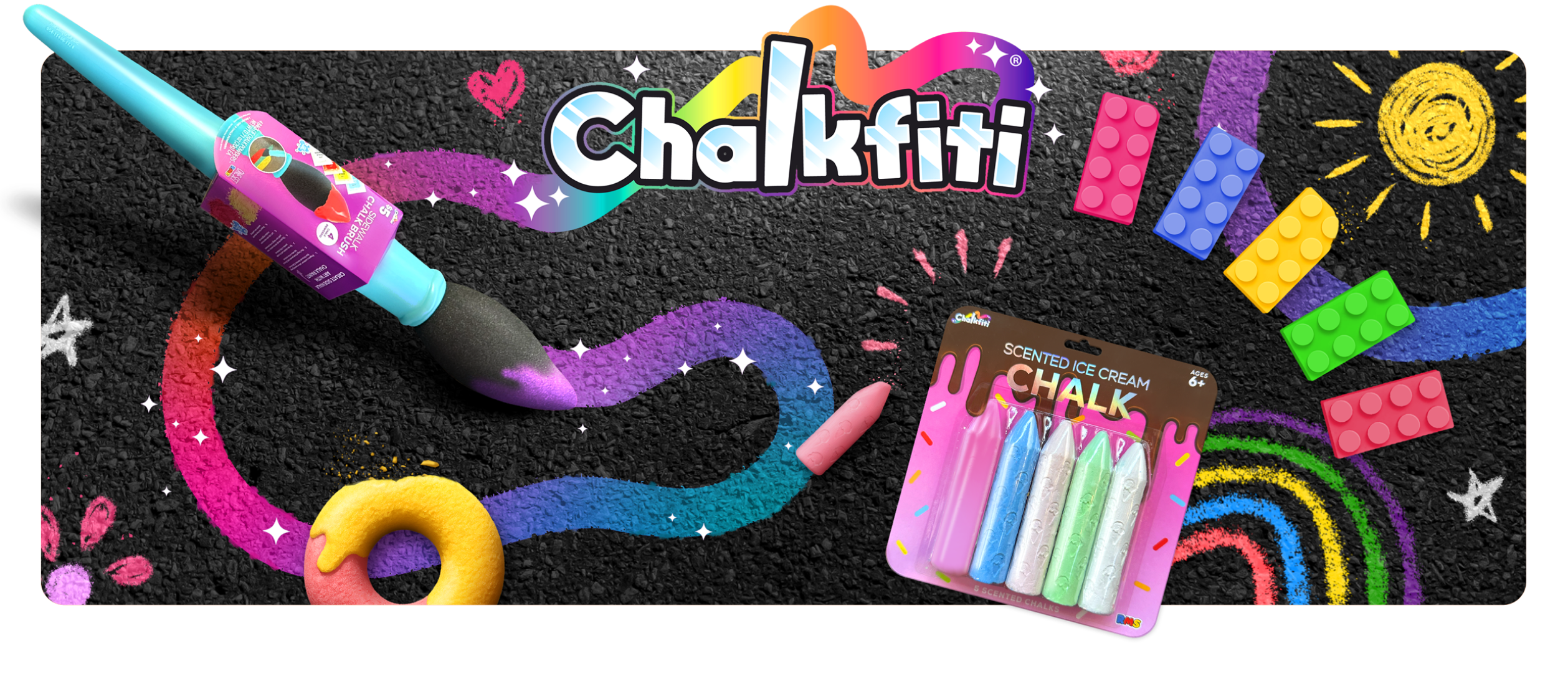 Stop and smell the sidewalk art with our line of scented chalk! From carnival thrills to ice cream chills, each set brings bold colors and irresistible scents to your sidewalk creations. It’s a fresh twist on classic chalk that’s made to spark imagination, smiles, and serious fun.