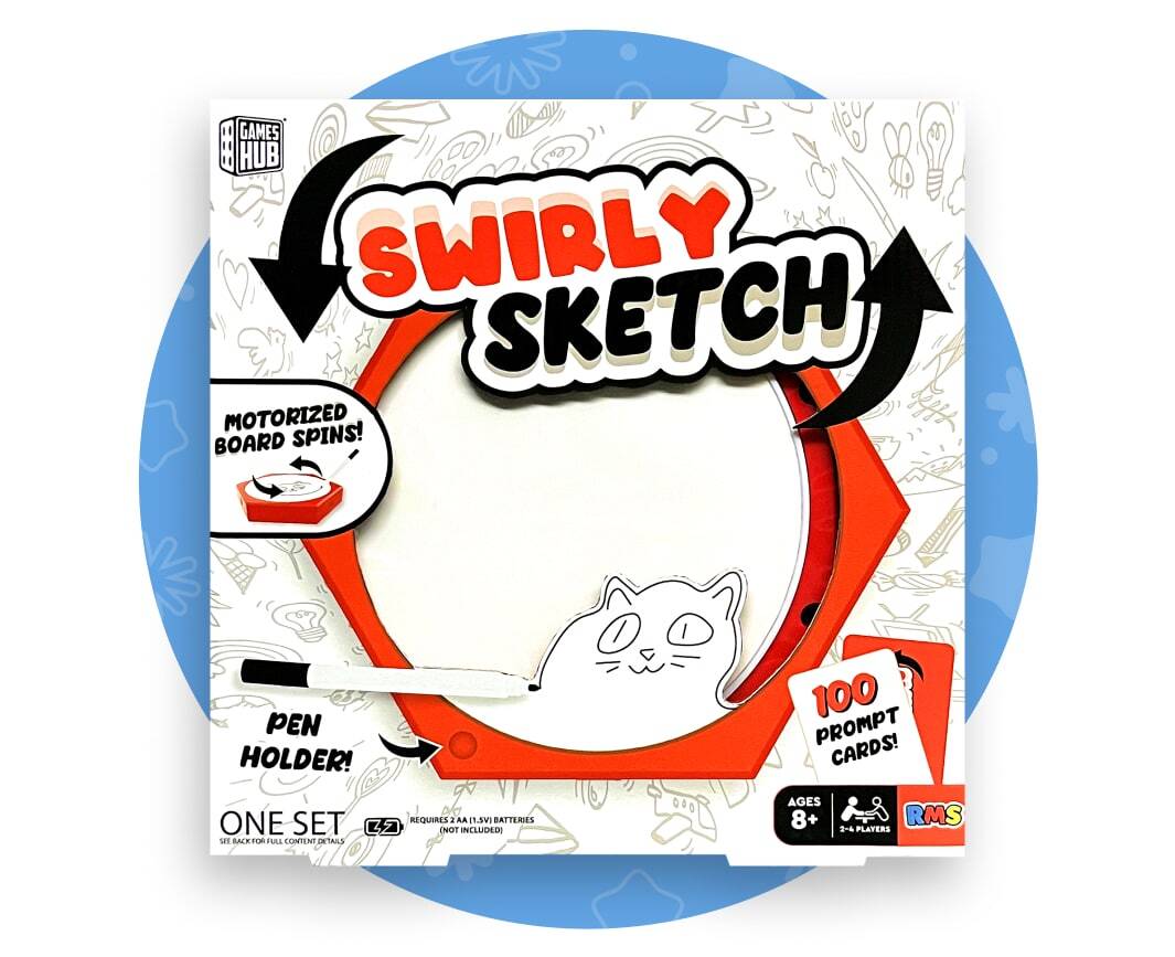 Unleash your inner artist with the Swirly Sketch Game Set, a fun and creative party game where players draw twisting, swirling doodles while everyone else tries to guess what they are. Designed for 2 - 4 players and great for ages 8 and up, this set brings plenty of laughs and lighthearted competition to family nights or hangouts.
