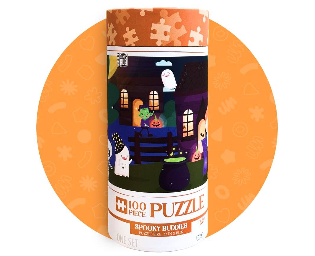 Put the pieces together for a spook-tacular challenge with the 100-piece Spookie Buddies puzzle. Featuring a lively Halloween scene full of playful ghosts, mischievous pumpkins, and friendly monsters, this puzzle is perfect for kids and families to enjoy together!