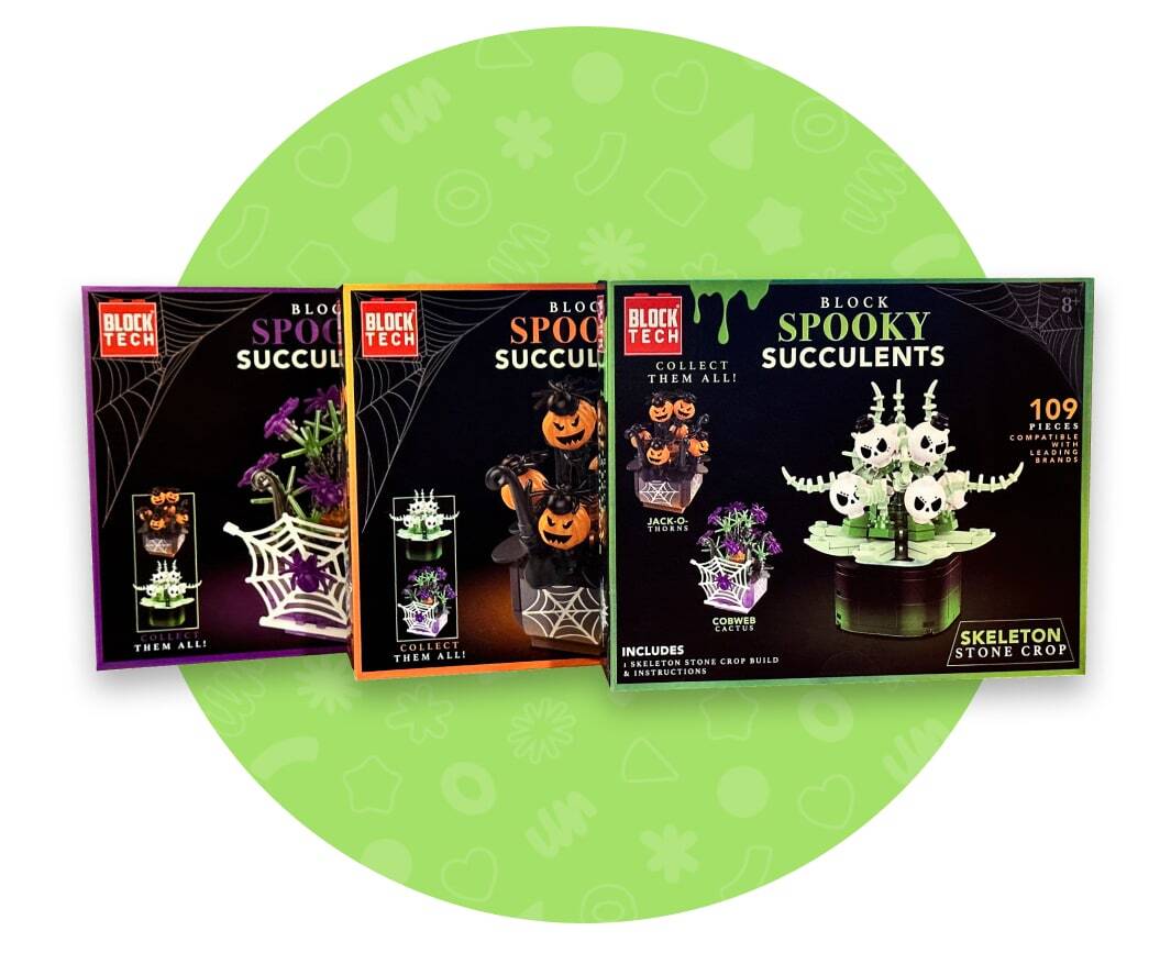 Build a little Halloween spirit with the Block Tech Spooky Succulents set. Each set features unique, seasonal plants that are fun to put together and display. Collect them all for a complete Halloween lineup.